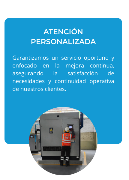 Somos un equipo humano enfocado en brindar soluciones integrales, eficientes y confiables a nuestros clientes, a través de servicios especializados de mantenimiento, reparación, alquiler y atención de emergencias en equipos de aire comprimido, garantizando un soporte oportuno y de alta calidad.