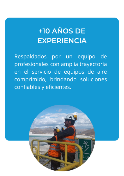 Somos una empresa peruana con más de 10 años de experiencia en el servicio de equipos de aire comprimido. Generamos valor en cada uno de nuestros clientes mediante la entrega de servicios especializados, personalizados y confiables.
